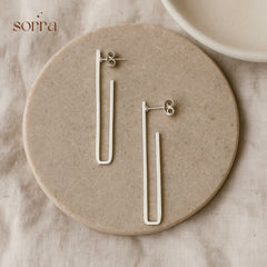 Silver Rectangle Drop Earrings | 925 Silver