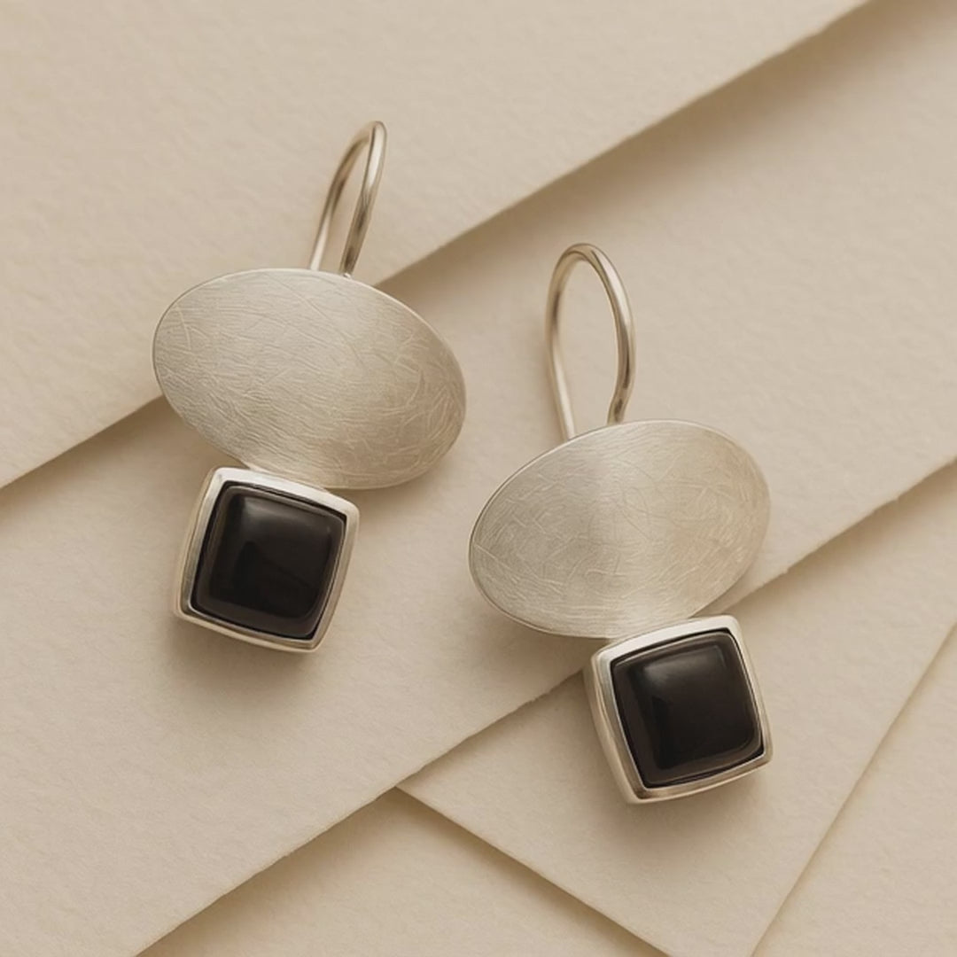 Add to wishlist Black Stone Cushion Drop Earrings | 925 Silver