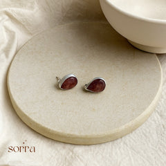 Pink STRAWBERRY Teardrop Stone Stud Earrings | 925 Silver