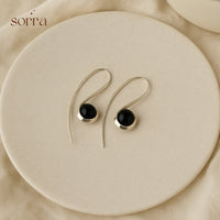 Silver Curve Drop Earrings – Midnight Black | 925 Silver