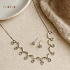 Step into modern elegance with the Twilight Loop Silver Set. This sleek silver-tone necklace and earring duo features interlocked loops for a minimalist yet polished look. Lightweight and hypoallergenic, it’s made for comfort and style. Ideal for work, evenings, or everyday wear. Complete your look with this stylish set today!
